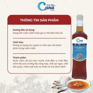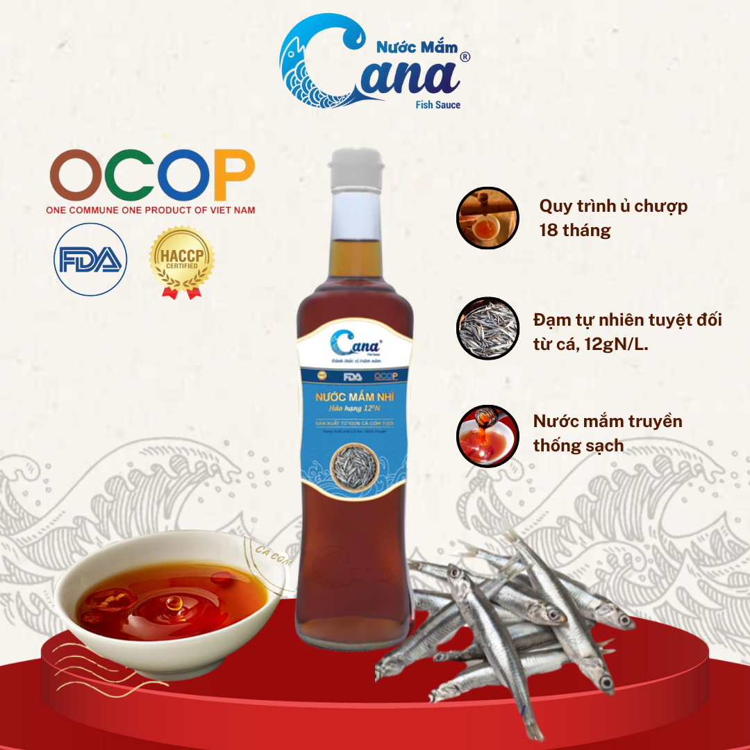 Nước mắm truyền thống cana được làm từ 100% cá cơm tươi vùng biển nước trồi Ninh Thuận – Việt Nam.